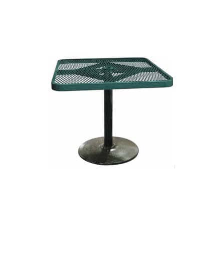 36″ Square Expanded Cafe Pedestal Table. Perfect for patios, pavilions, and any outdoor venue. 11 gauge steel construction. compatible with our outdoor chairs