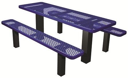 Permanent Mount Expanded Metal Picnic Table. 9 gauge expanded metal seats and top. Black powder coated galvanized steel understructure. Thermoplastic finish