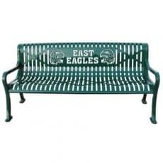 Customized logo or words manufactured into the bench back.