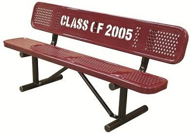 Personalized Multicolor Perforated Standard Bench. Customized logo or words manufactured into bench back. Secondary color behind customized logo.